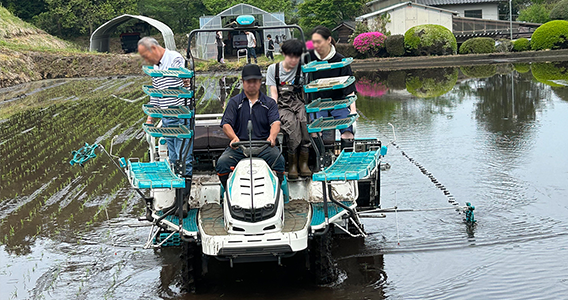 実取商事では、自社で圃場を確保し、稲作を行うことで生産者の気持ちに寄り添い、収穫の感動や稲作の難しさ・楽しさを共有しています。農機具の貸し出しや業務の請負を通じて、生産者との信頼関係を深めています。